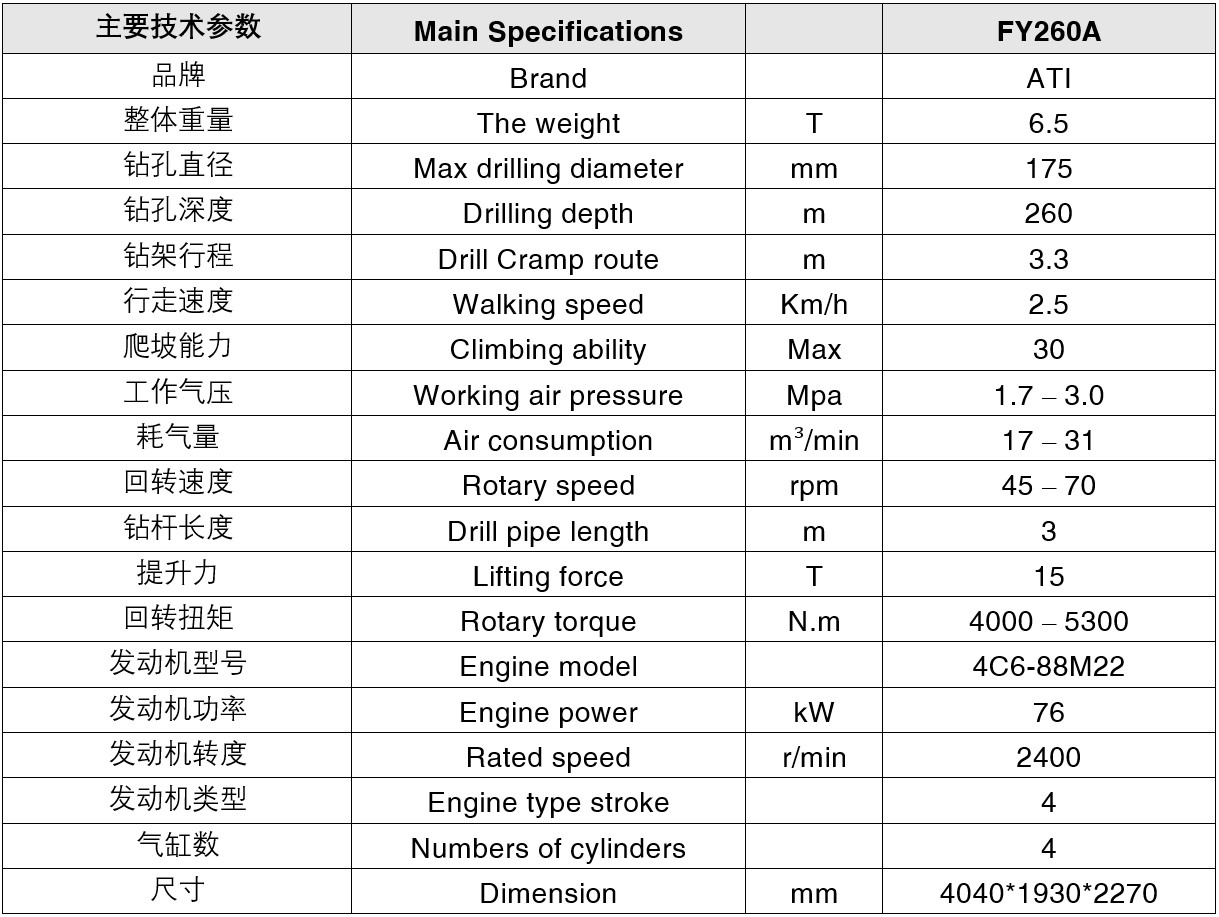 FY260A water well drilling rig is a small steel crawler model drilling rig. Compared with rubber crawler, steel crawler has stronger off-road performance. The drilling rig is easy to operate and easy for workers to master, which can reduce labor intensity. Moreover, it has stable performance, low probability of failure during operation, and can ensure the continuity of work.