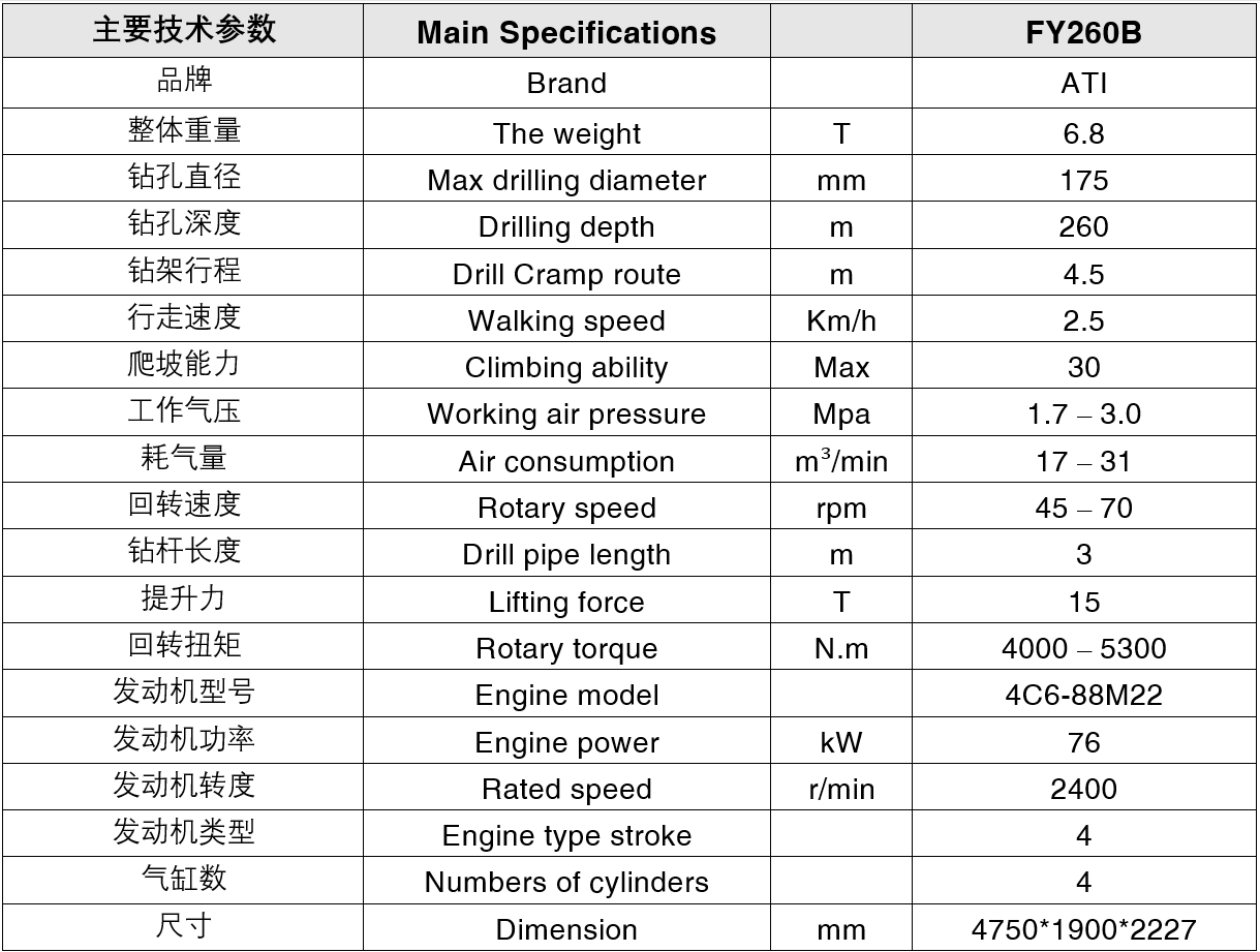 The FY260B water well drilling rig is a small steel crawler model. Compared with rubber crawler, steel crawler has stronger off-road performance. The drilling rig is easy to operate and easy for workers to master, which can reduce labor intensity. Moreover, it has stable performance, low probability of failure during operation, and can ensure the continuity of work.