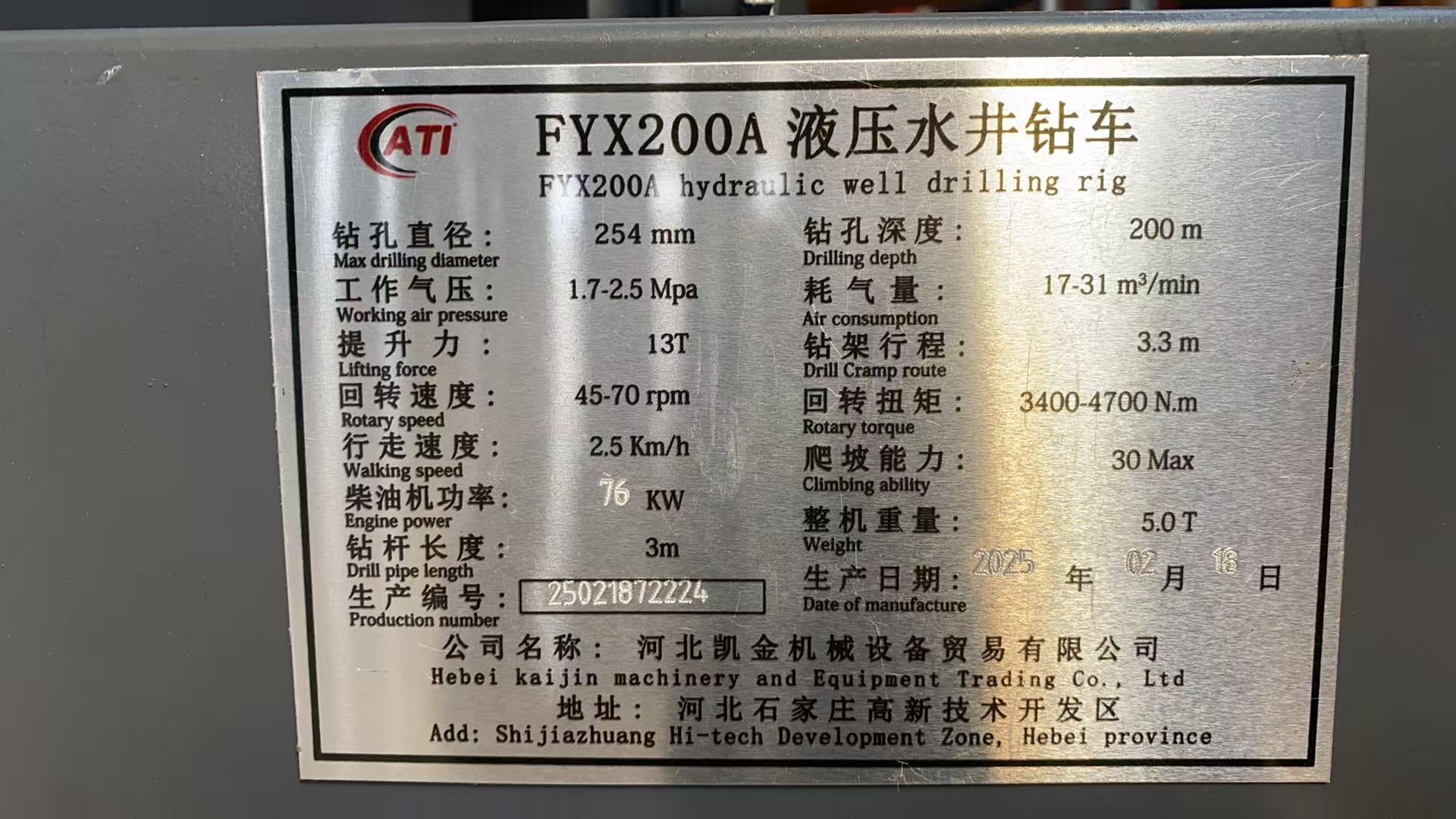 FYX-200A HYDRAULIC WELL DRILLING RIG